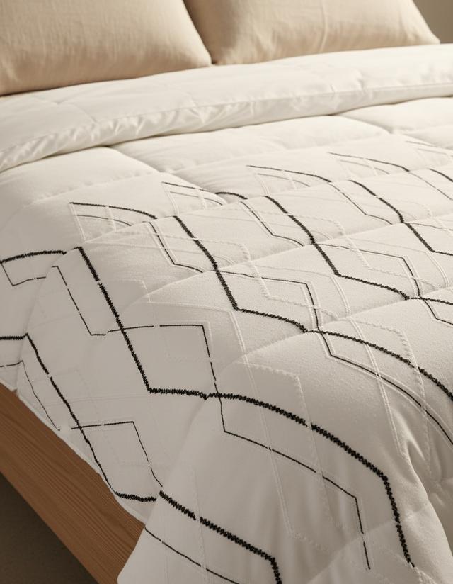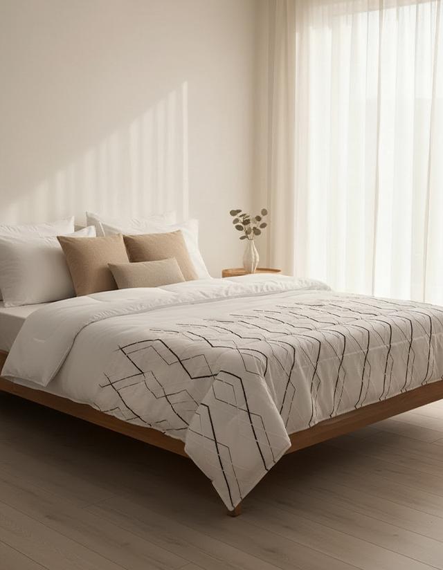 اجعل سريرك يعكس أناقة عصرية مع لحاف جرافيك بتصميم هندسي راقٍ يجمع بين البساطة والتميّز. مصنوع من قماش ناعم عالي الجودة يمنحك إحساسًا بالراحة طوال الليل، مع حشوة خفيفة توفر دفئًا معتدلًا ومثاليًا لكل الفصول. تصميمه الأنيق يضيف لمسة عصرية إلى غرفة نومك بسهولة.