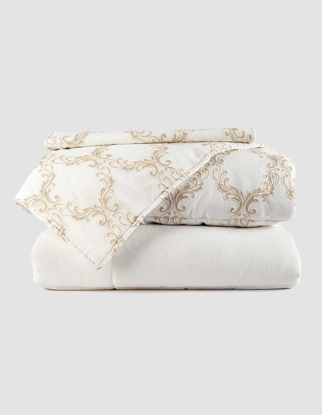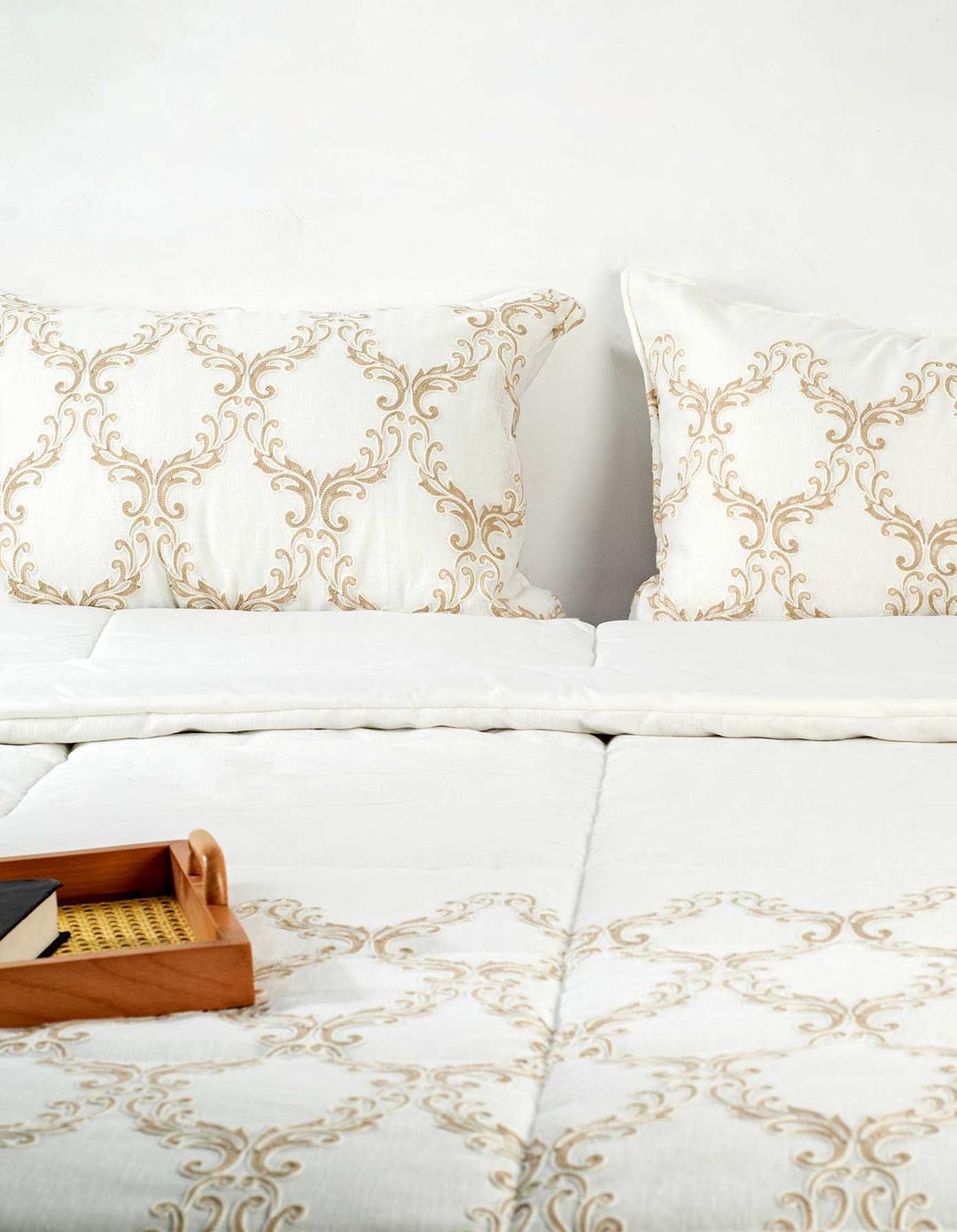 أضف لمسة من الفخامة الملكية إلى غرفة نومك مع لحاف رويال المصمم بتطريز ذهبي أنيق مستوحى من النقوش الكلاسيكية الراقية. يتميز بخامة ناعمة عالية الجودة تمنحك راحة استثنائية ودفئًا مثاليًا، مما يجعله الخيار الأمثل لمحبي الأناقة والتفاصيل الفاخرة. تصميمه الراقي يضفي على سريرك طابعًا فاخرًا وجذابًا.
