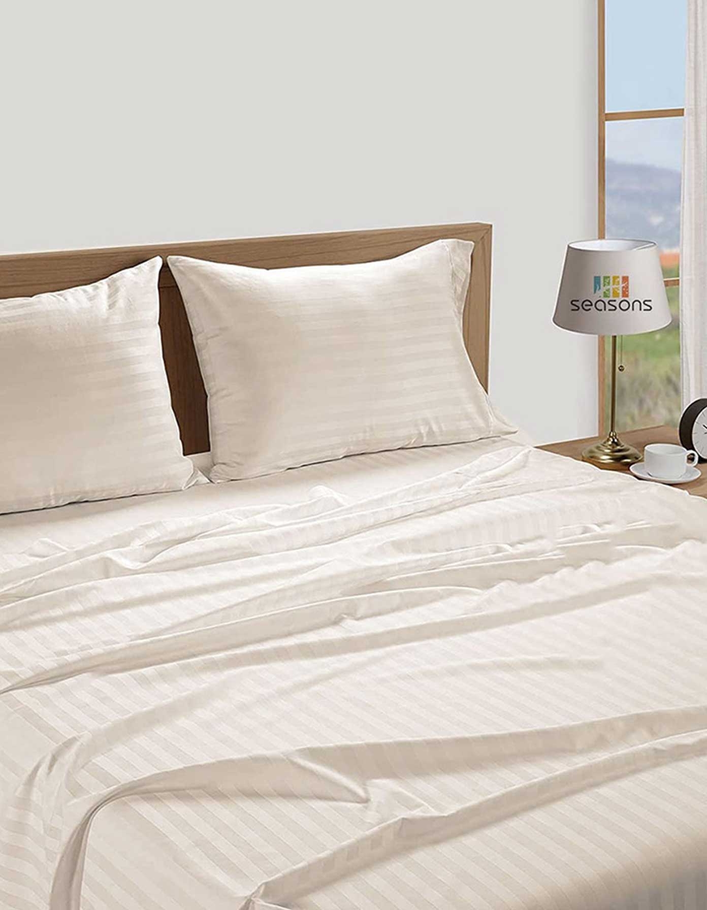 Printed Fitted Sheet Set Polycotton (65% Cotton + 35% Blended)- striped beige