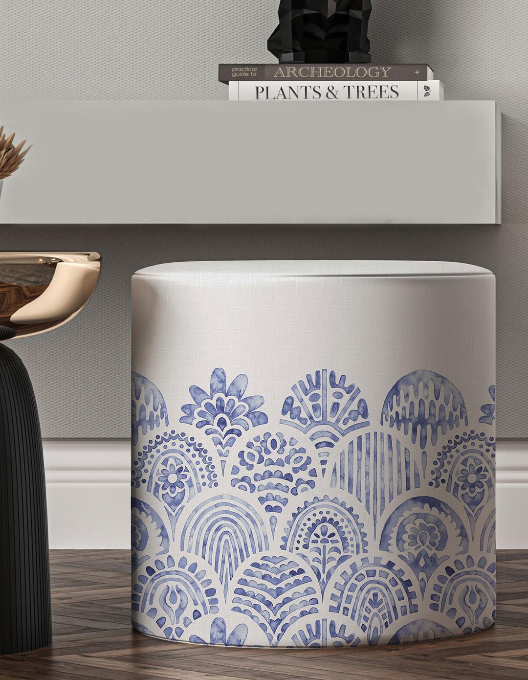 Luxurious round pouf, adding comfort and style to any living space, perfect for lounging or as an extra seating option.