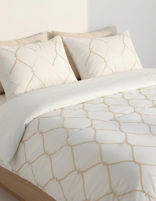 Enjoy understated luxury with the Diamond Comforter, featuring delicate golden embroidery in a modern cross-line pattern that adds elegance and harmony to your bed. Made from premium soft fabric, it provides perfect comfort and balanced warmth for restful nights. Its timeless design complements any bedroom style with a refined touch.